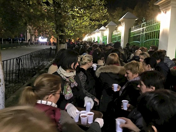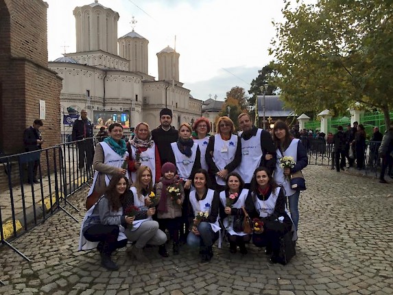 Pe 24 octombrie tinerii voluntari de la Biserica Icoanei însoțiți de Pr. Marcel Stavara au împărțit sandvich- uri pelerinilor prezenți pe Colina Bucuriei pentru a se închina la Cinstitele Moaște ale Sf. Trei Ierarhi, ale Sf Constantin si Elena si Sf Dimitrie cel nou, ocrotitorul Bucureștilor. Echipa de tineri voluntari a distribuit si ceai cald pentru pelerinii aflați pe Colina Bucuriei.